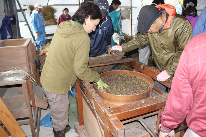 平成22年11月17日(水) 刈り取ったそばの脱穀を行いました。